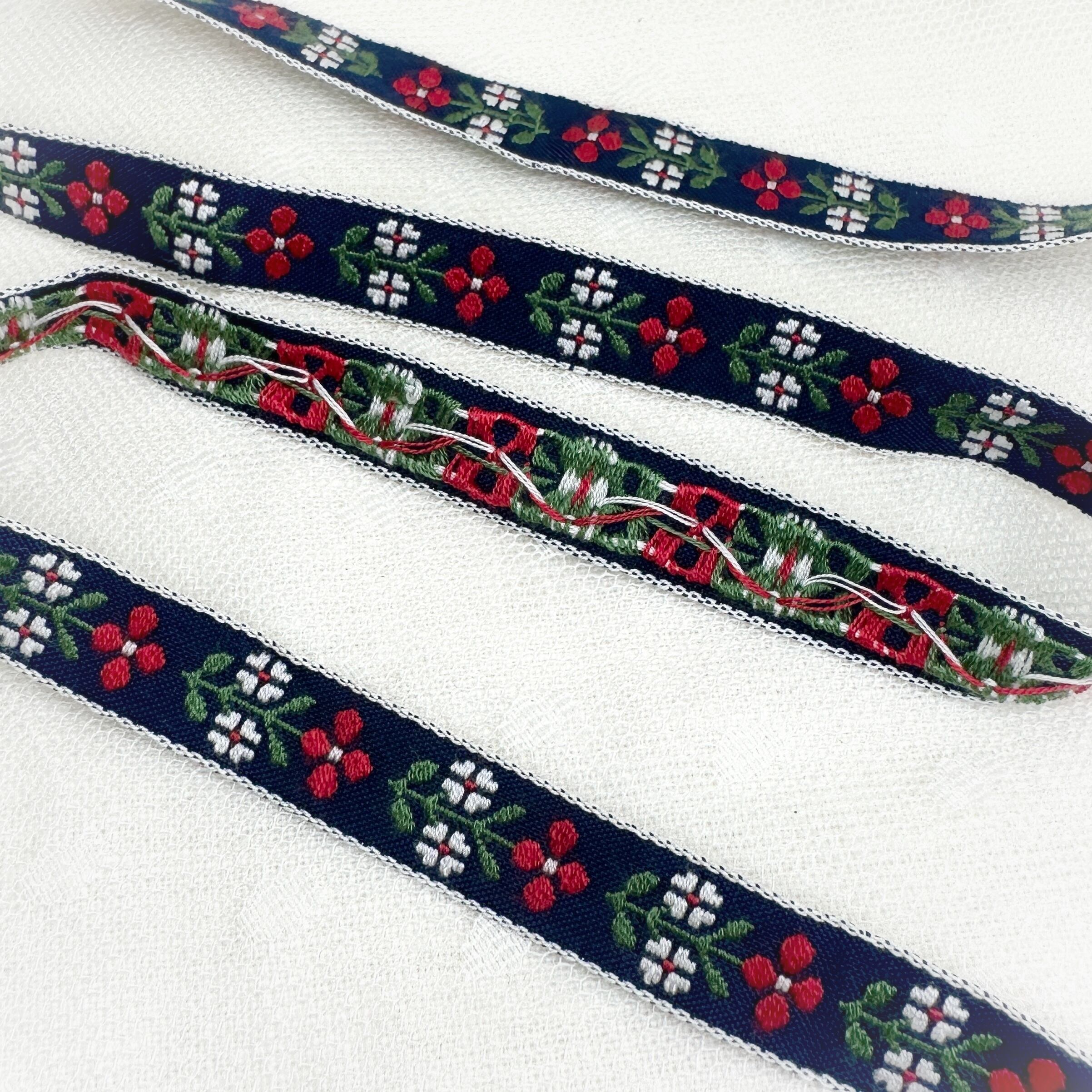 チロリアンテープ リボン 花 ブルー 12mm幅 1m単位 T29