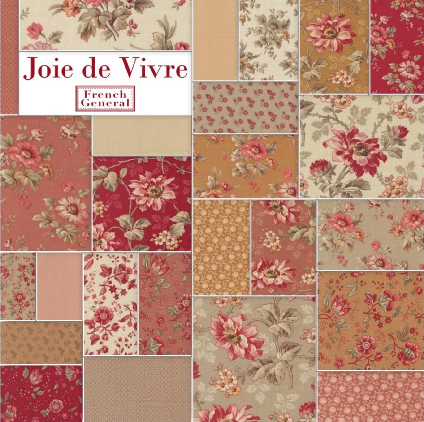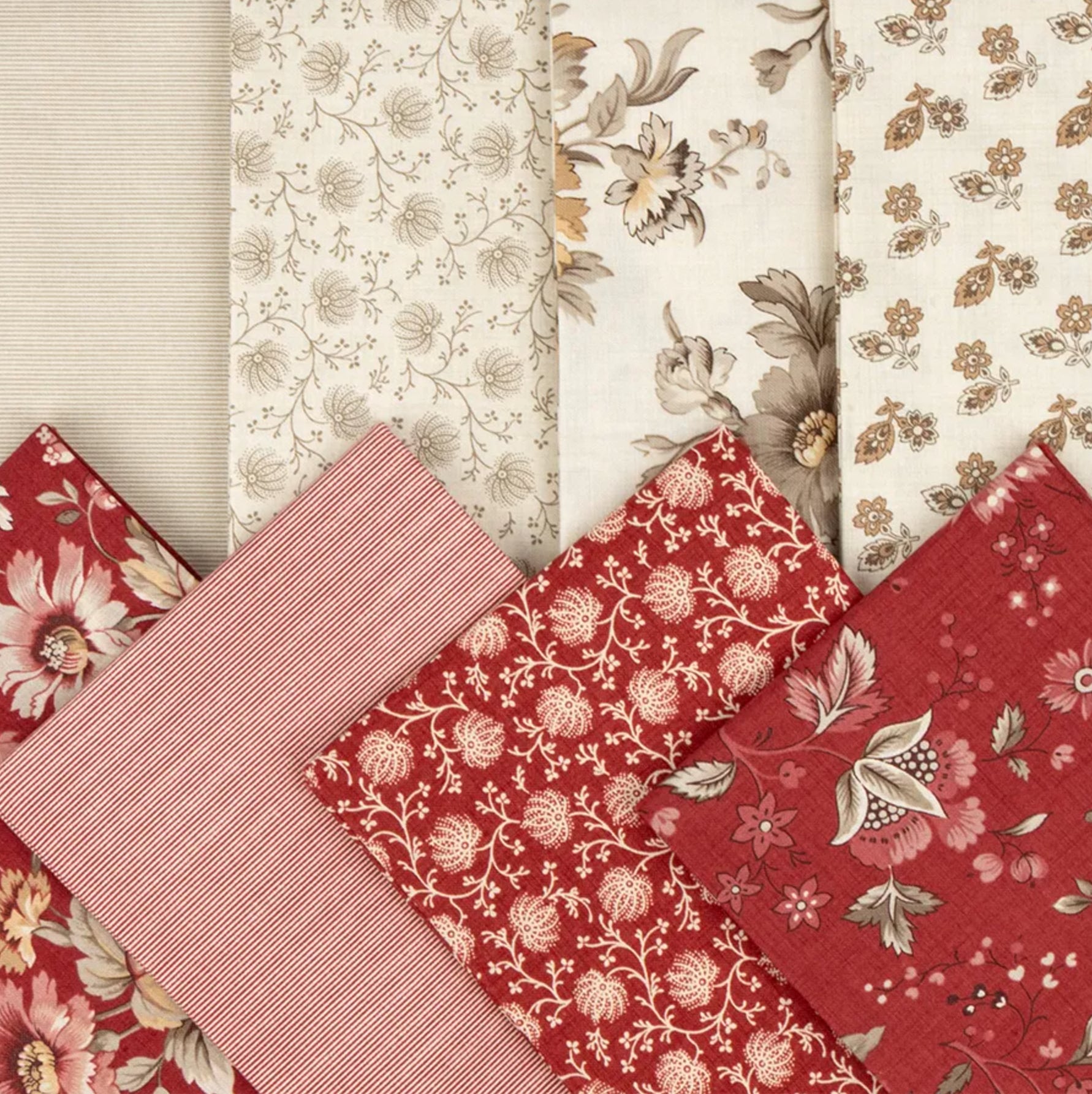 深いフレンチレッド、グレージュ、クリーム、ローズカラーなど、落ち着いた配色が特徴。