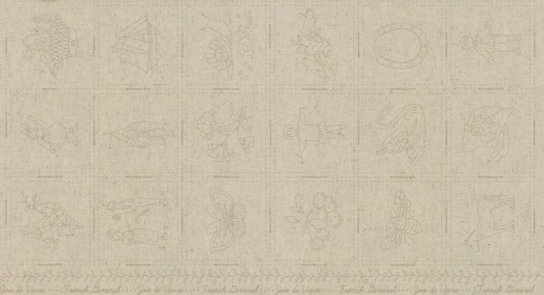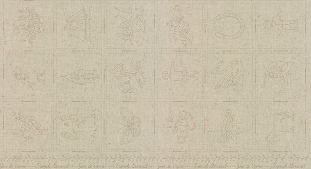 フレンチジェネラルの魅力は、ファブリックだけにとどまらず、アンティークデザインの刺繍ワークも!