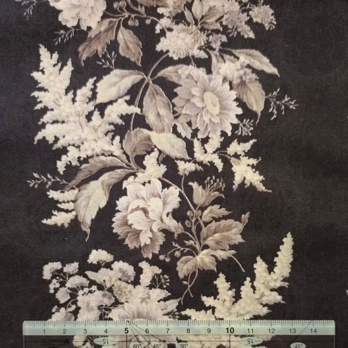 国産コットン 花柄 ボーダー Gentle Flowers トープカラー ブラック QUILT GATE QG47