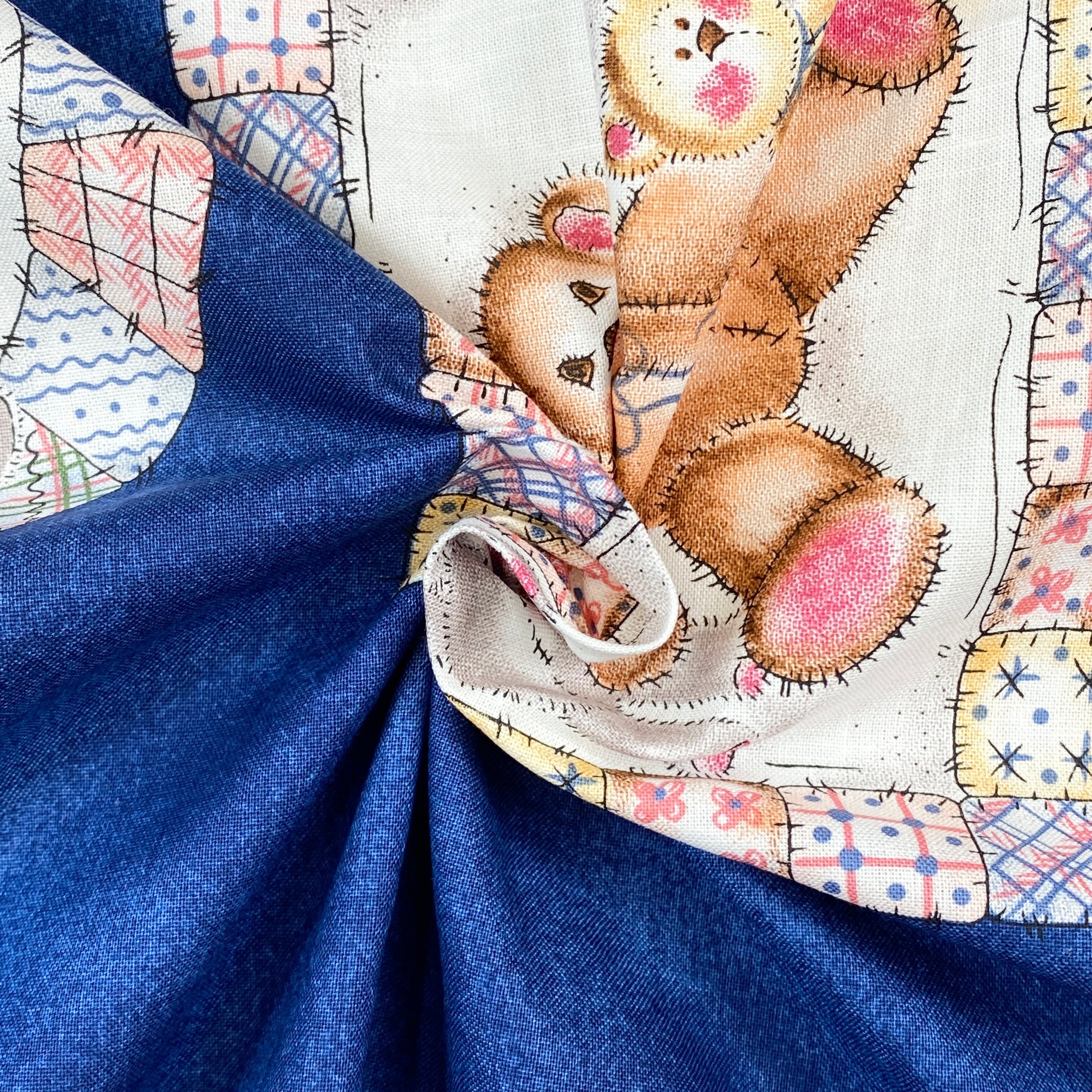 USAコットン Mimiのお気に入り テディーベアパネル(紺色) PF8 布幅55cmX59㎝単位カット〜