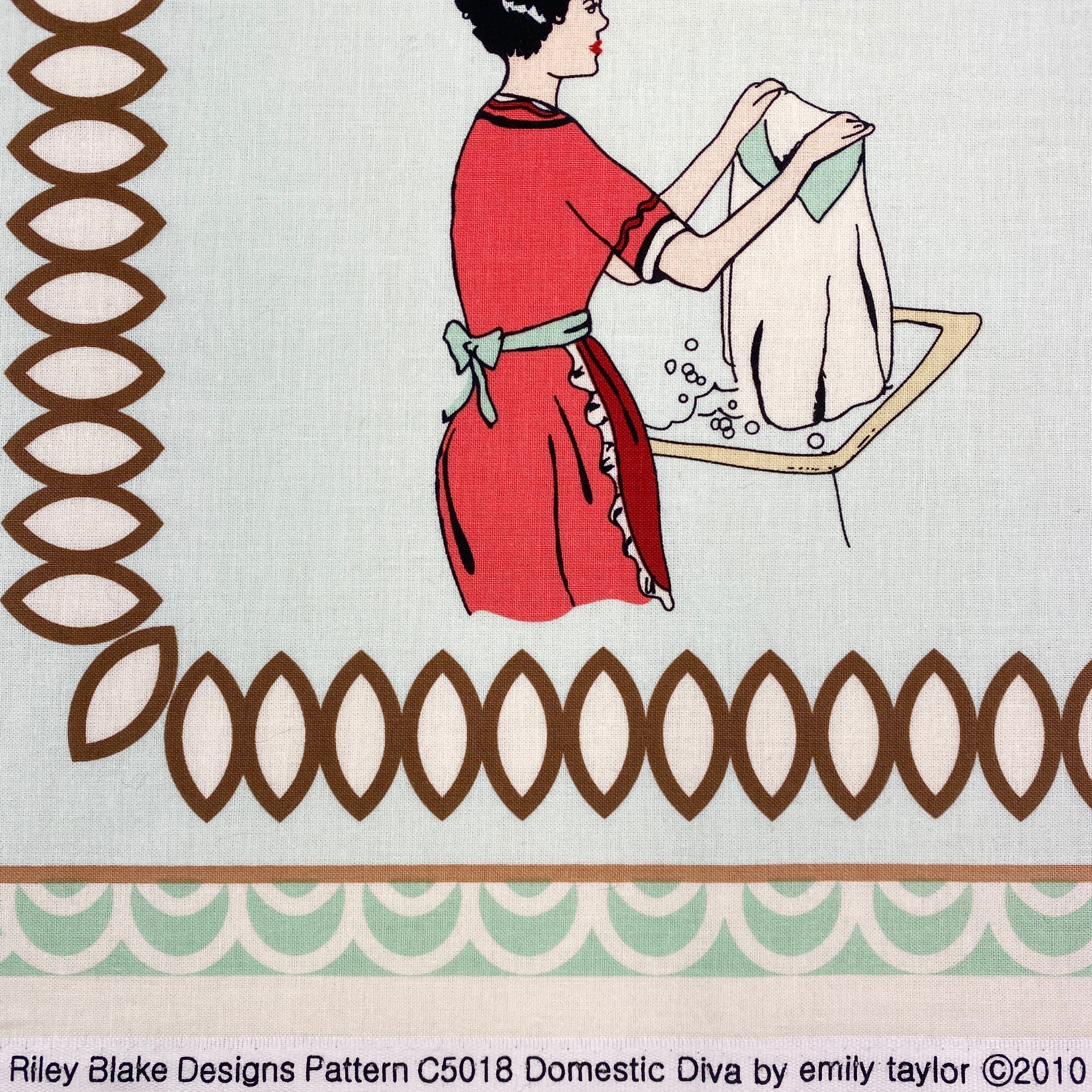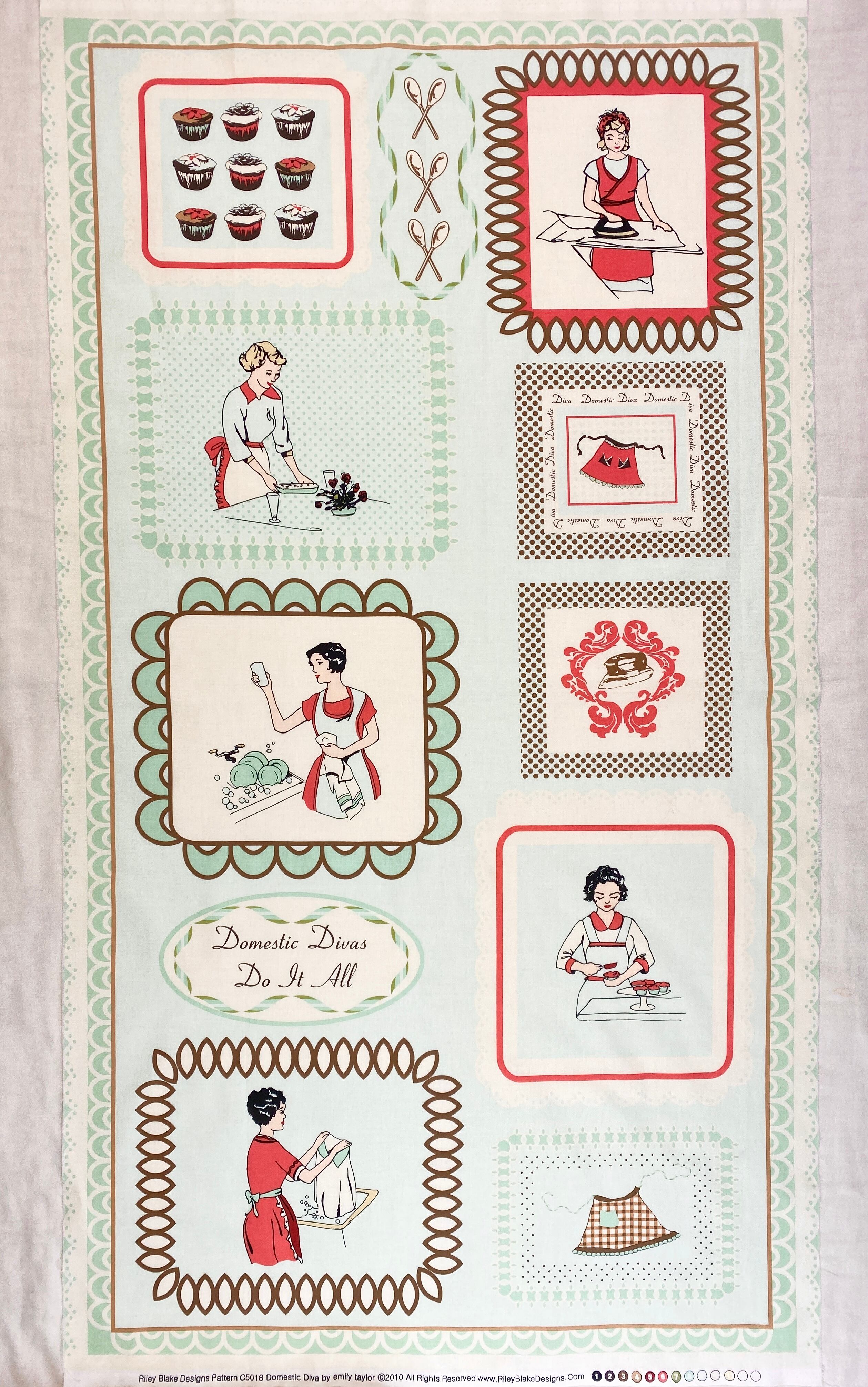 アメリカンレトロなおしゃれなパネル布です。家事をこなすカリスマ主婦をモチーフにしたデザインです。小物作りにお洒落な演出をしてくれます。