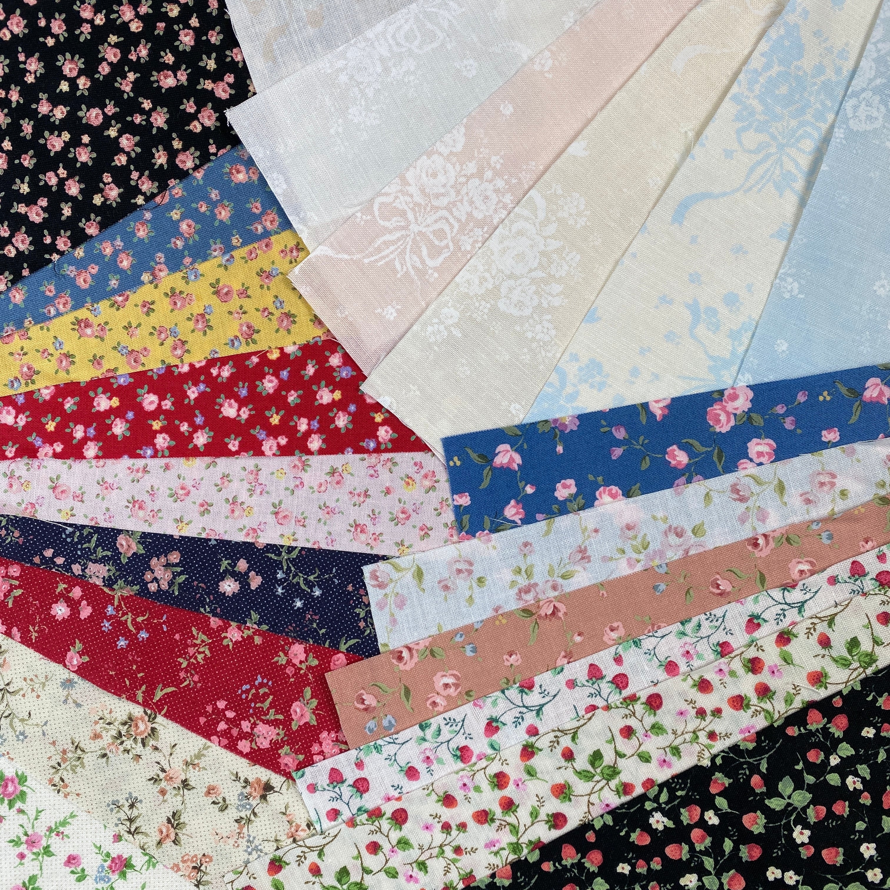 サイズはまちまちですが、ルシアン は布部門から撤退しており、ファンにとっては二度と手に入らない貴重な布達です。