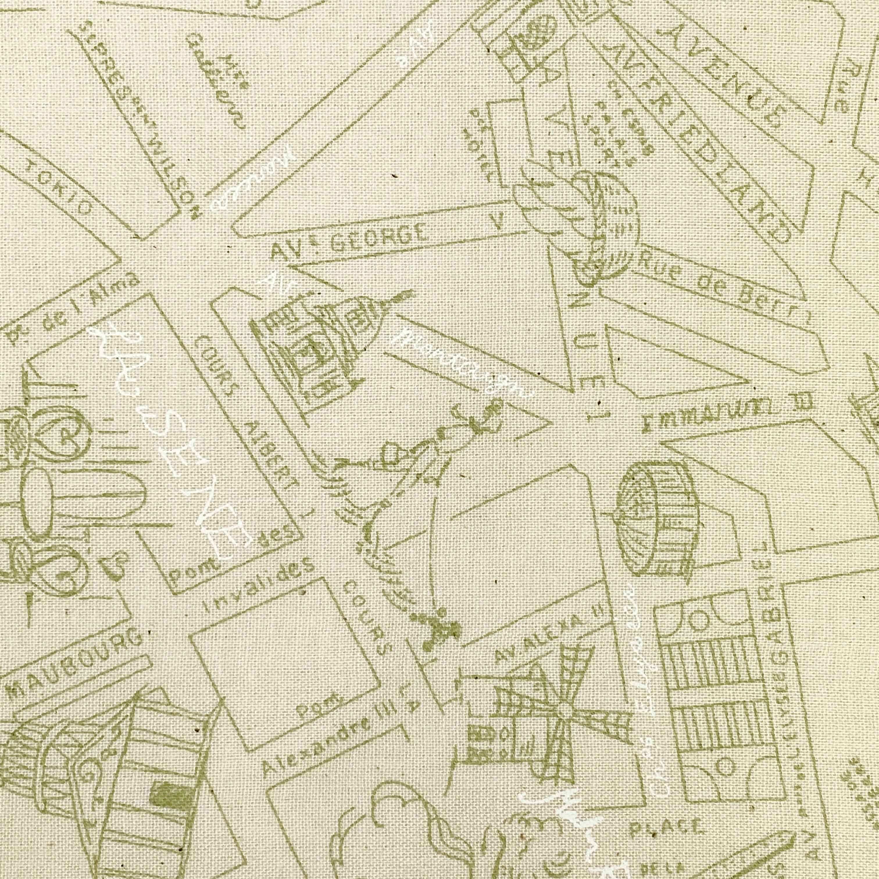 生成色のシーチング地にパリの地図がプリントされてます。