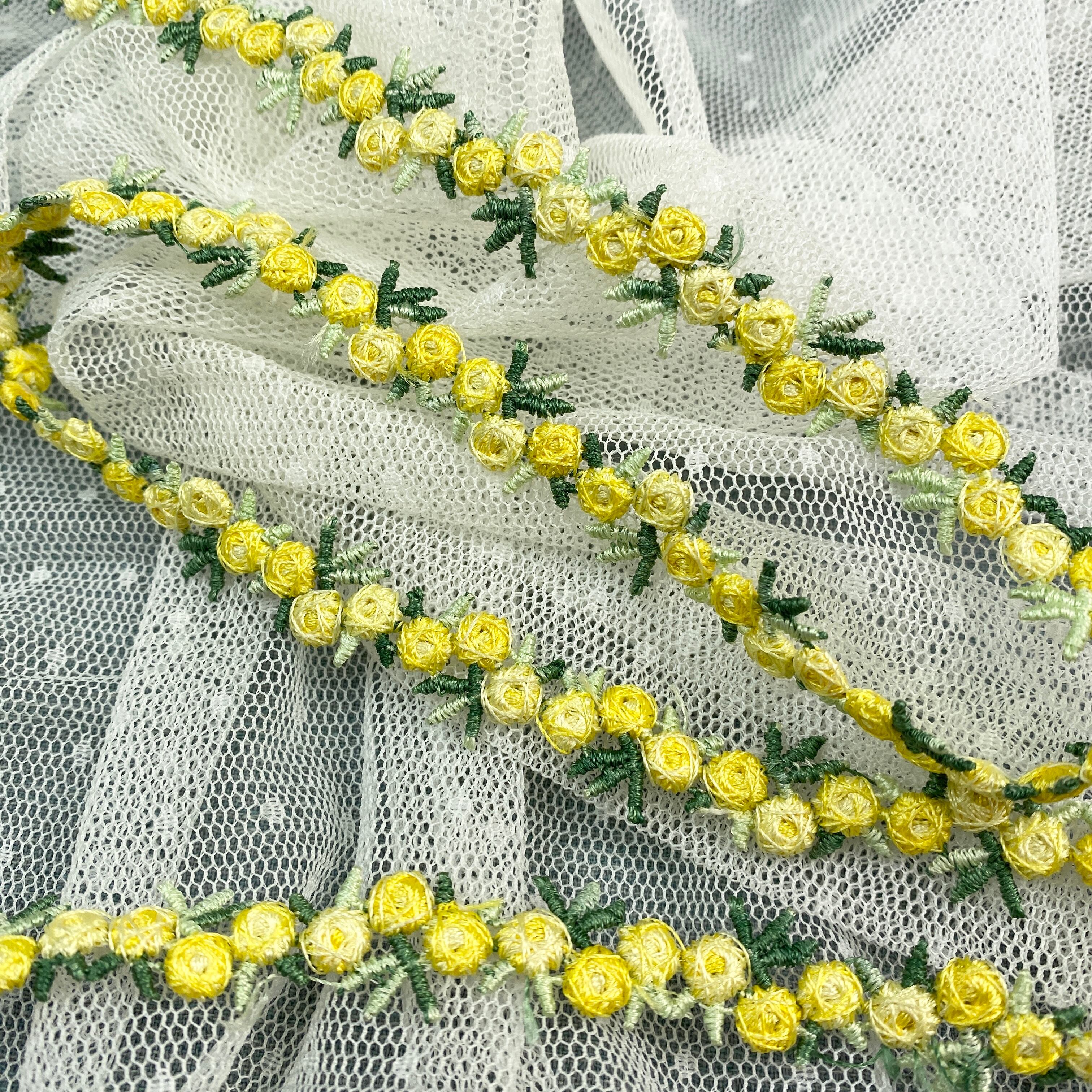 フラワー刺繍リボンテープ バラ イエロー 1m単位カット T12