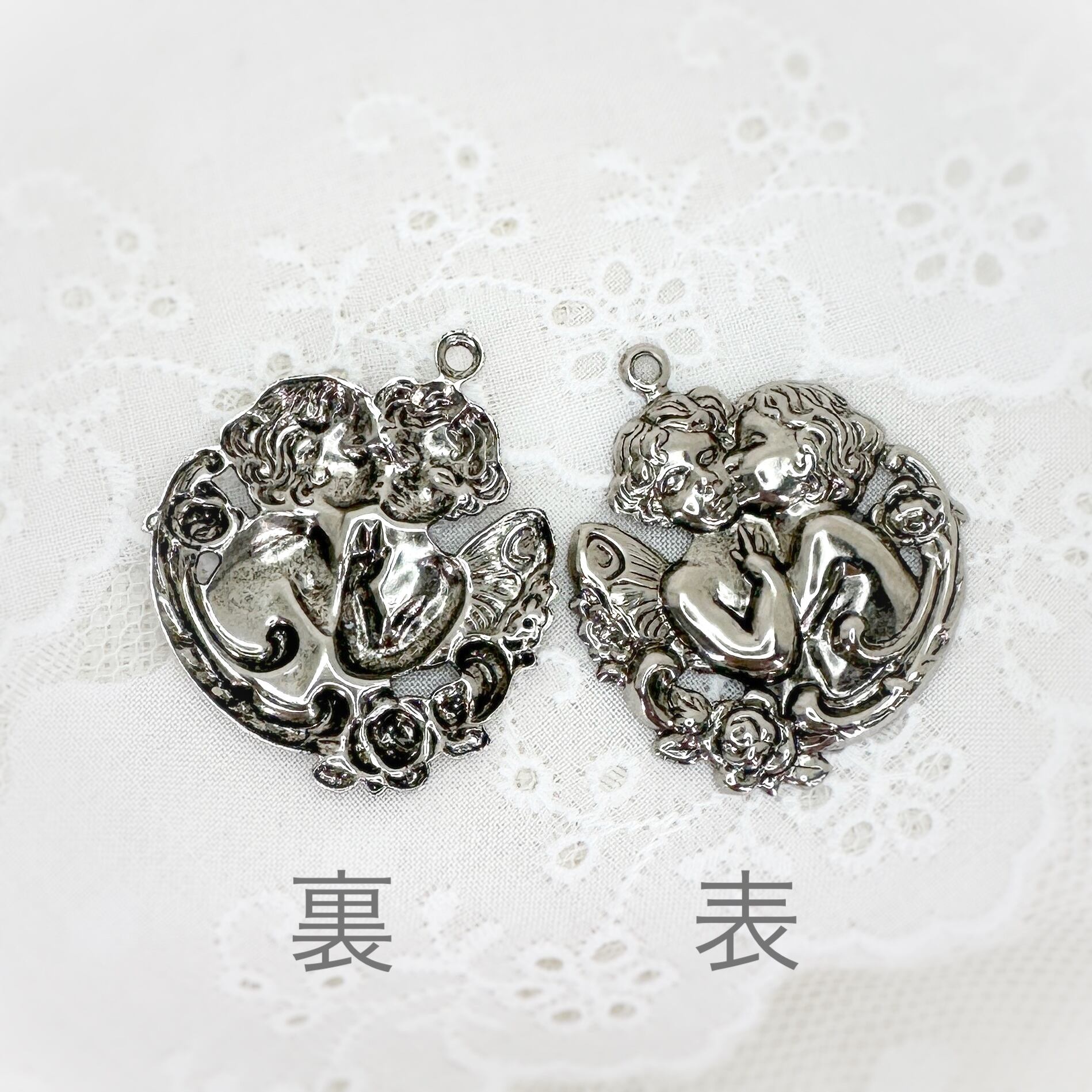 アメリカ直輸入 チャーム・パーツ ヴィンテージ エンジェル アンティークシルバー 2個セット PC32