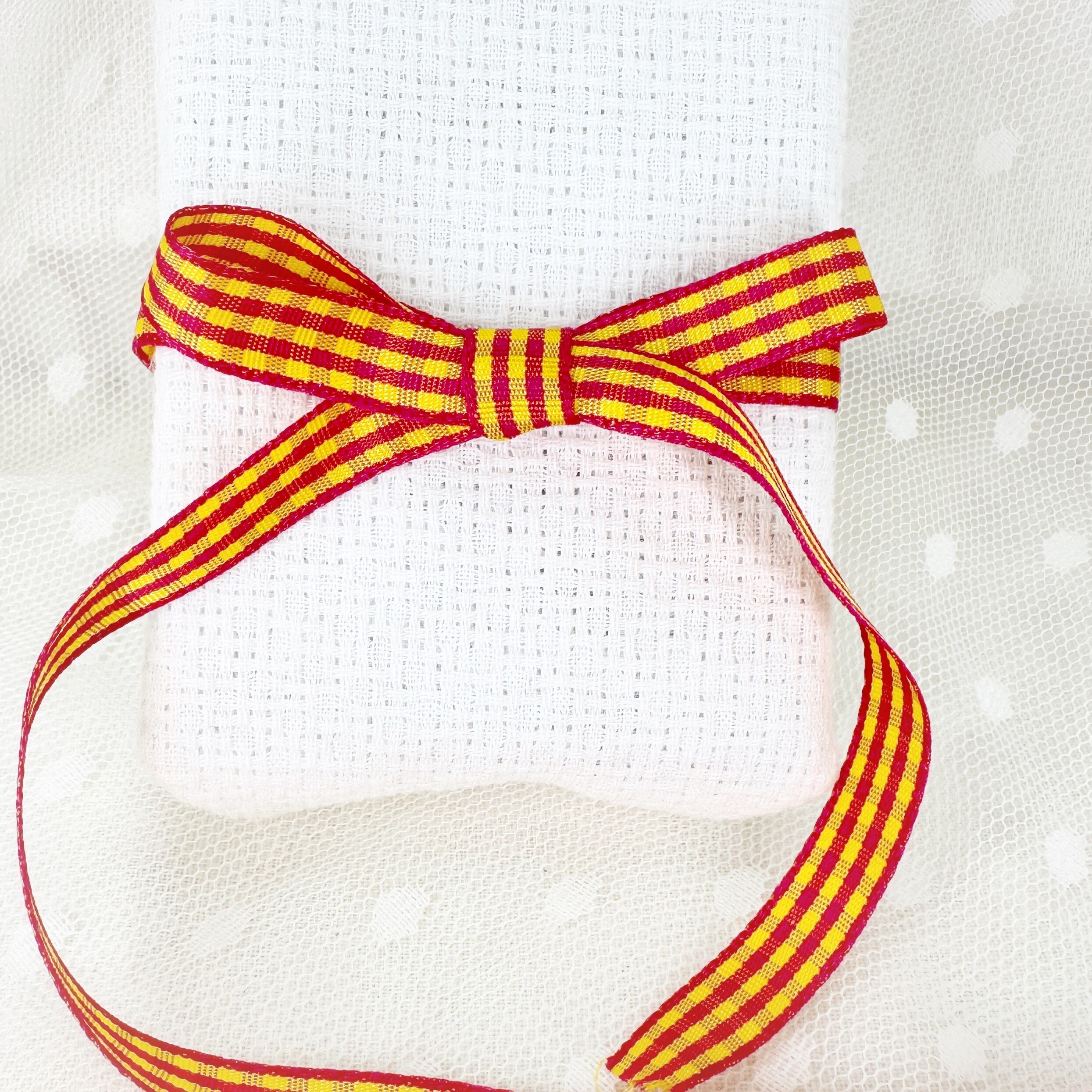 アメリカ直輸入 リボン チェック 黄色×ピンク 2m単位 R64
